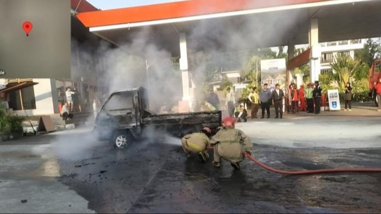 Foto: Pikap terbakar di SPBU (dok. Damkar Bogor)